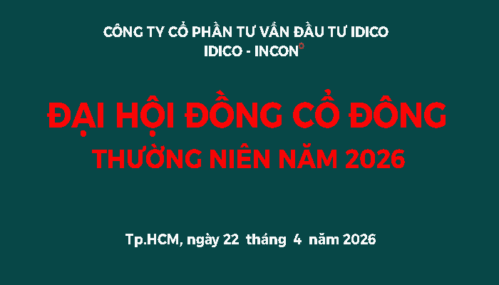 8h 30 phút, ngày 24/04/2025 Công Ty Cổ Phần Tư Vấn Đầu Tư IDICO (IDICO-INCON) đã tổ chức Đại Hội Đồng Cổ ...